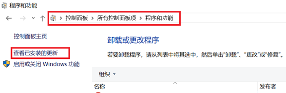 - 在搜索栏输入“控制面板”,在查看方式选择“大图标”,然后选择“程序和功能”,然后点击“查看已安装的更新”。