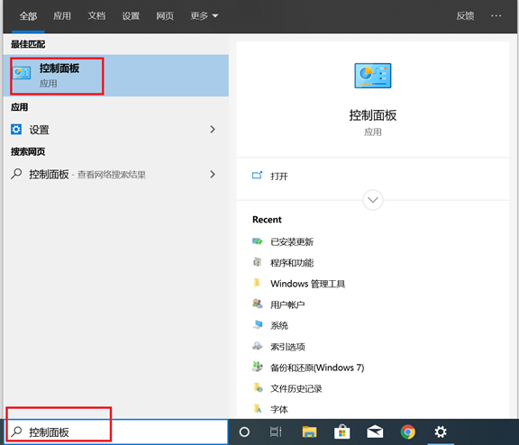 - 在任务栏左下角搜索栏输入“控制面板”。