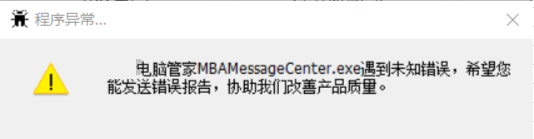 笔记本突然弹出弹框,提示电脑管家遇到未知错误,如下图: