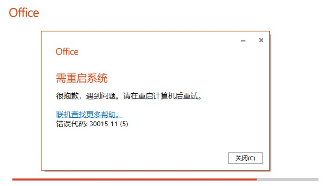 | 安装Office时出现错误代码30015 |