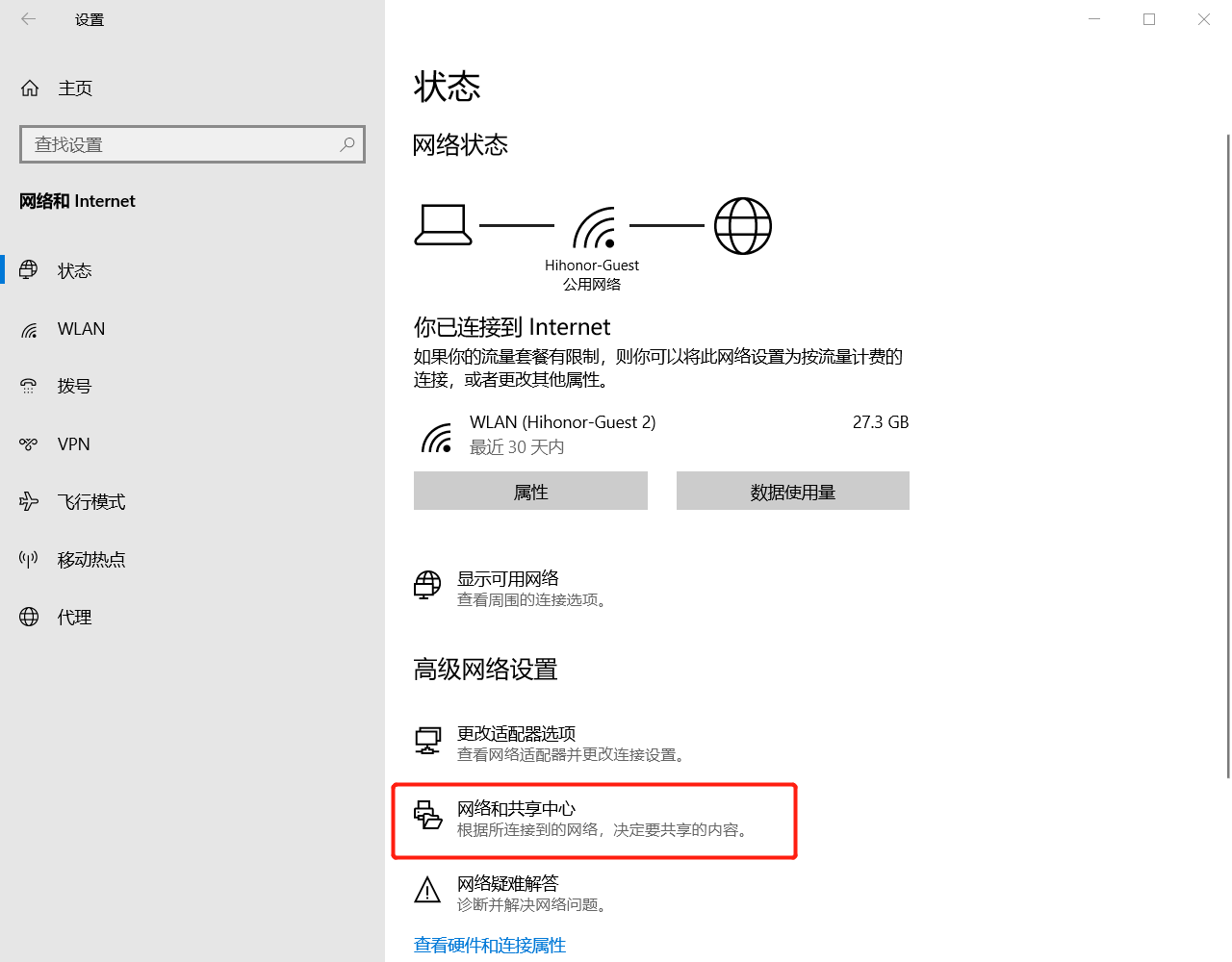 - 右键网络连接图标,点击打开网络和Internet设置,单击左侧WLAN,下滑点击打开网络和共享中心。