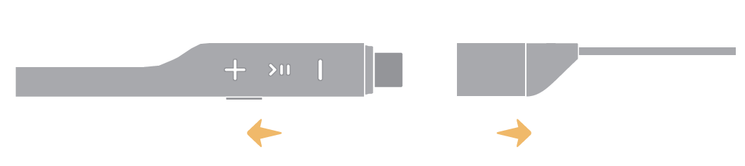 耳机控制盒(含按键的盒子)可以分成两截,从中间拉开,露出USB-C充电接口.图 1. 拉开耳机,露出USB-C充电接口
