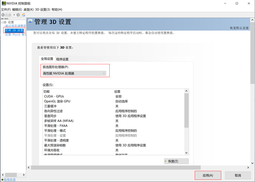 - 设置全局使用独立显卡