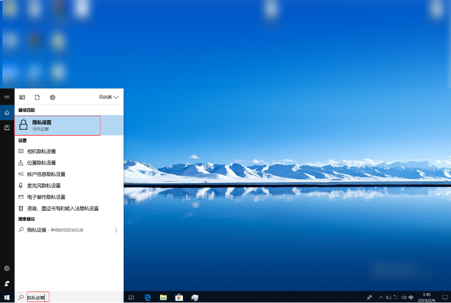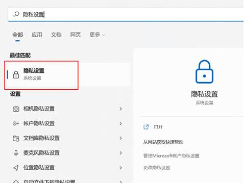 - 在Windows 搜索栏中搜索“隐私设置”并打开;