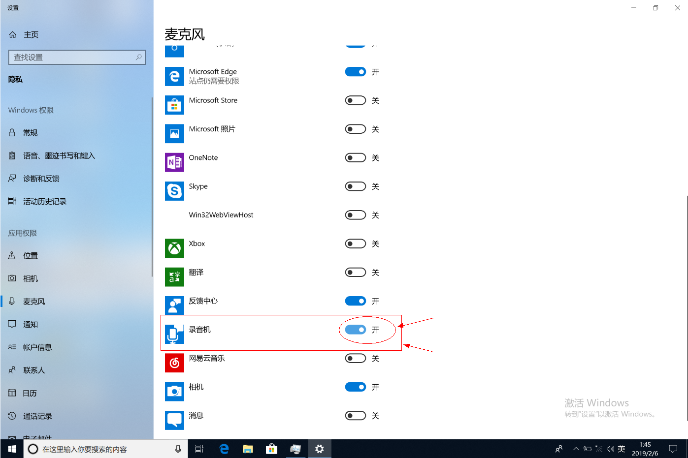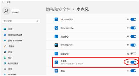 - 选择具体的软件,打开该软件访问麦克风的权限,以软件“录音机”为例: