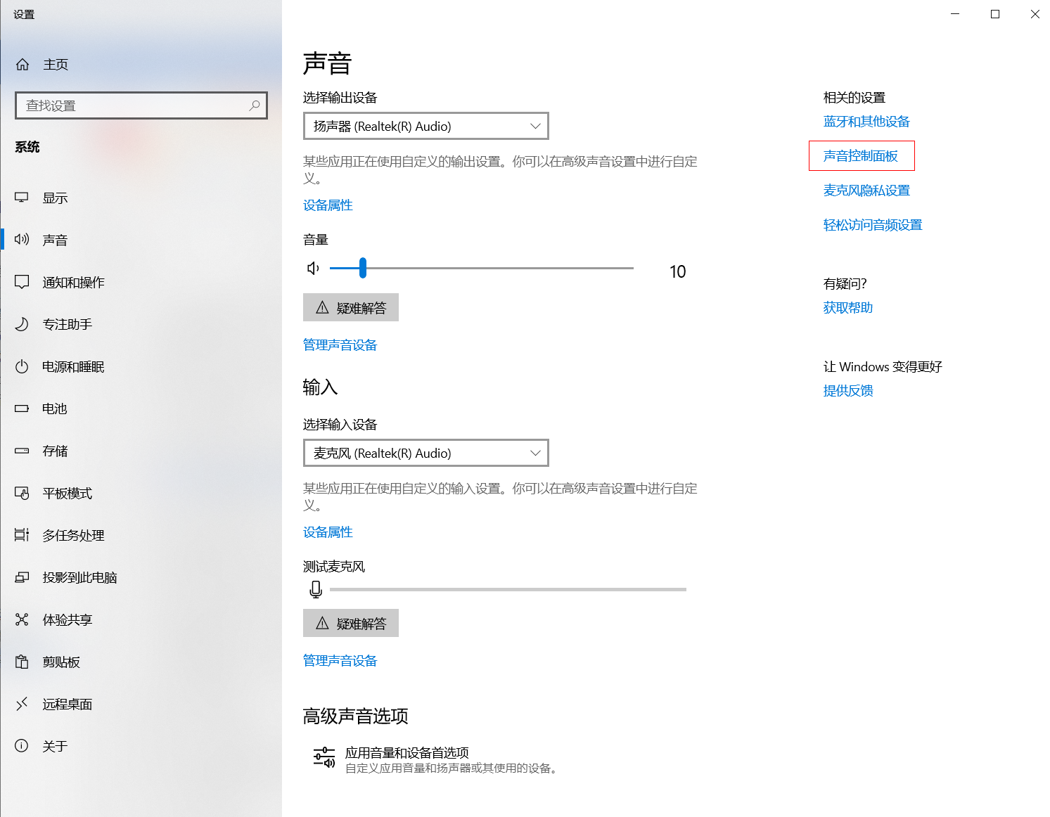 - 您可以先右键点击扬声器,然后运行疑难解答排查,然后在检查下是否按了键盘功能键F7禁用了麦克风,若没有禁用的话,在Windows 任务栏的声音设置图标上点击右键,选择“声音(设置)”,或者声音图标上点击右键,选择“打开声音设置”,在相关的设置中选择“声音控制面板/更多声音设置”;