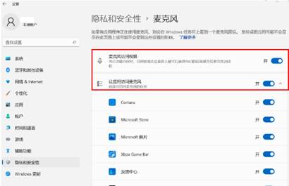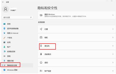 - 在“隐私和安全性“中选择“麦克风”