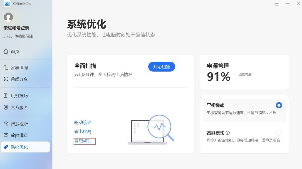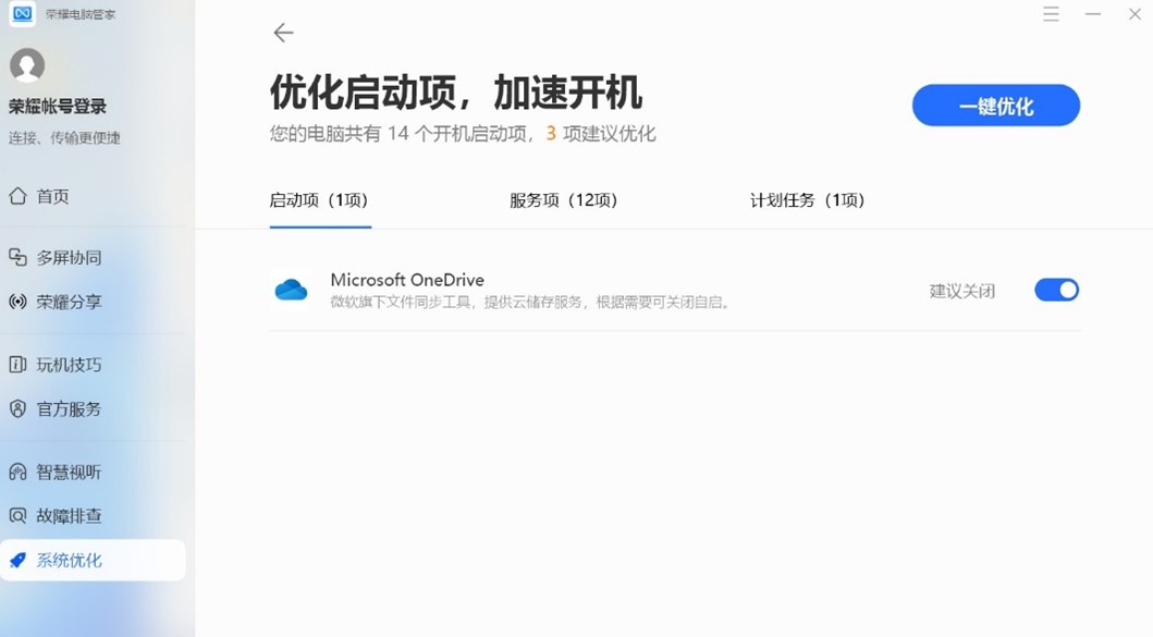 建议您打开任务管理器 > 启动,禁用不常用的应用程序,或在电脑管家 > 系统优化 > 自启动项优化,如下图: