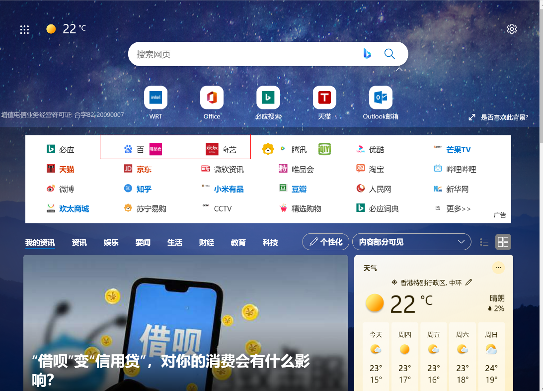 打开Edge浏览器,首页图标出现重叠。