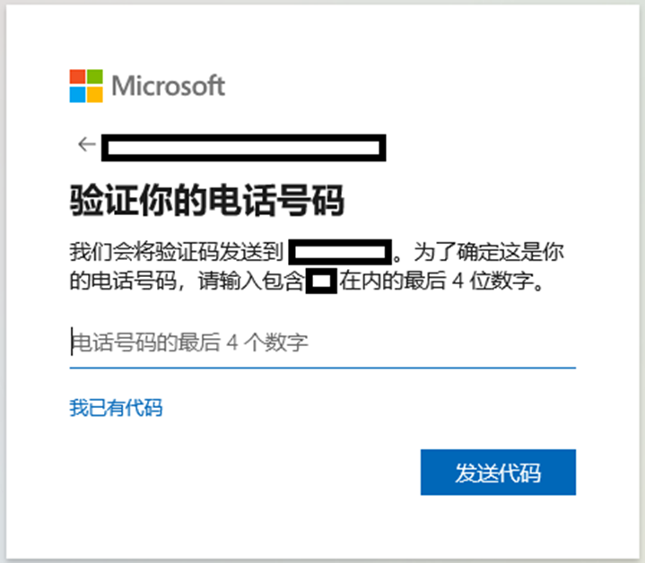 - 验证手机号时,需要您输入手机号后4位以用于核实,输入正确后点击发送代码,收到代码后输入完成验证。