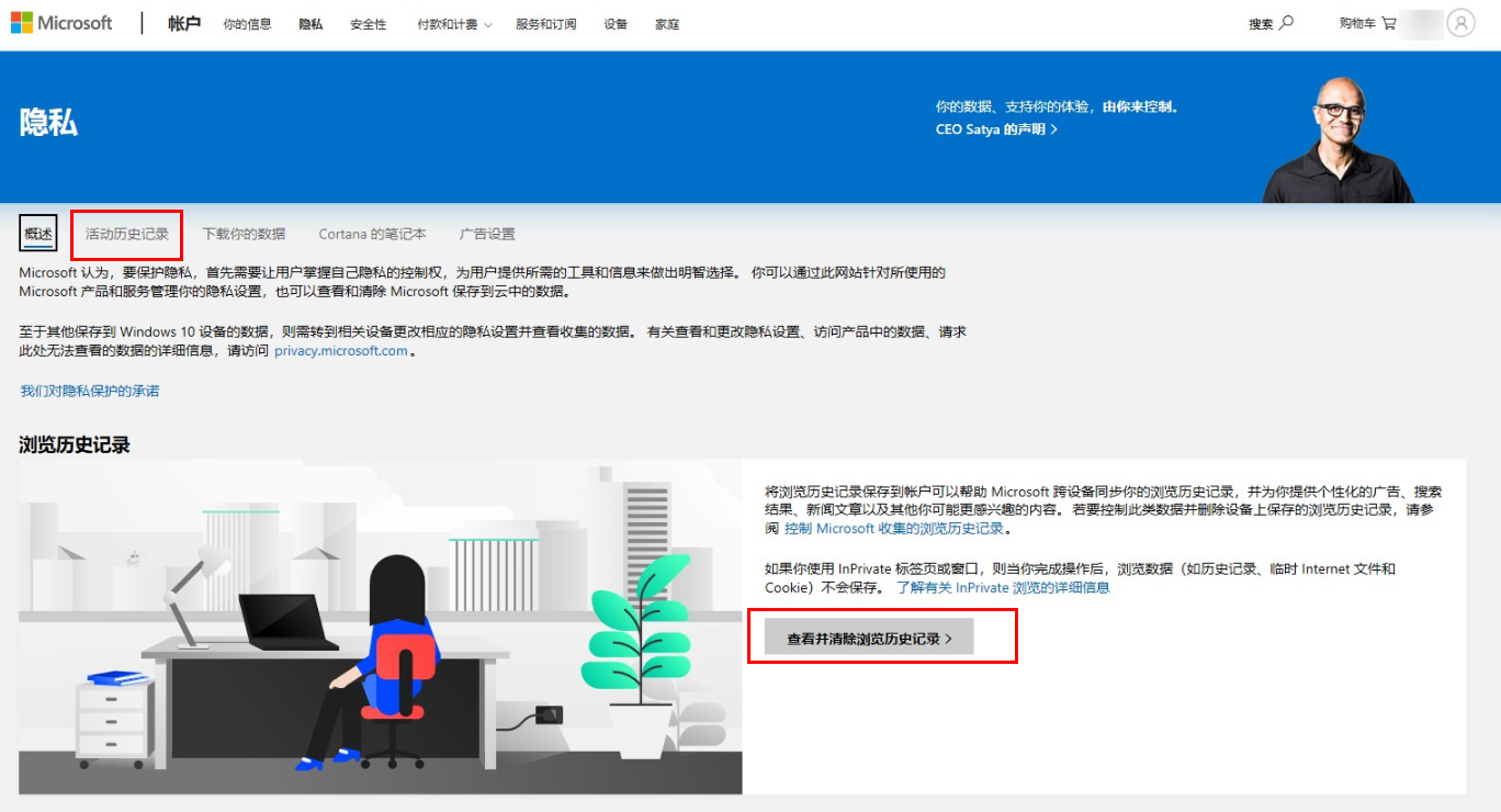 如何删除微软帐户活动历史记录