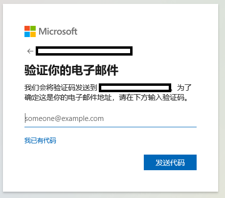 - 验证邮箱号时,需要完整输入邮箱信息以用于核实,输入正确后点击发送代码,收到代码后输入完成验证。