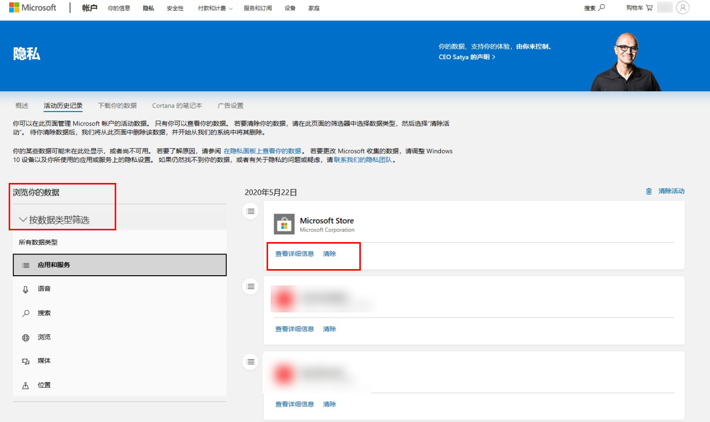 如何删除微软帐户活动历史记录