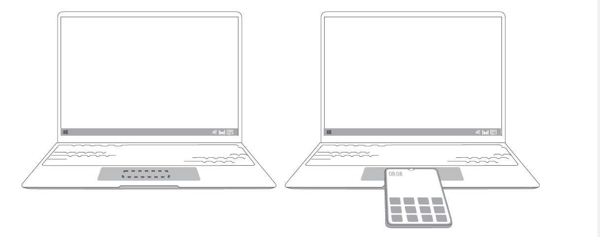 荣耀分享感应区域大致位于触摸板中间,外部不可见。