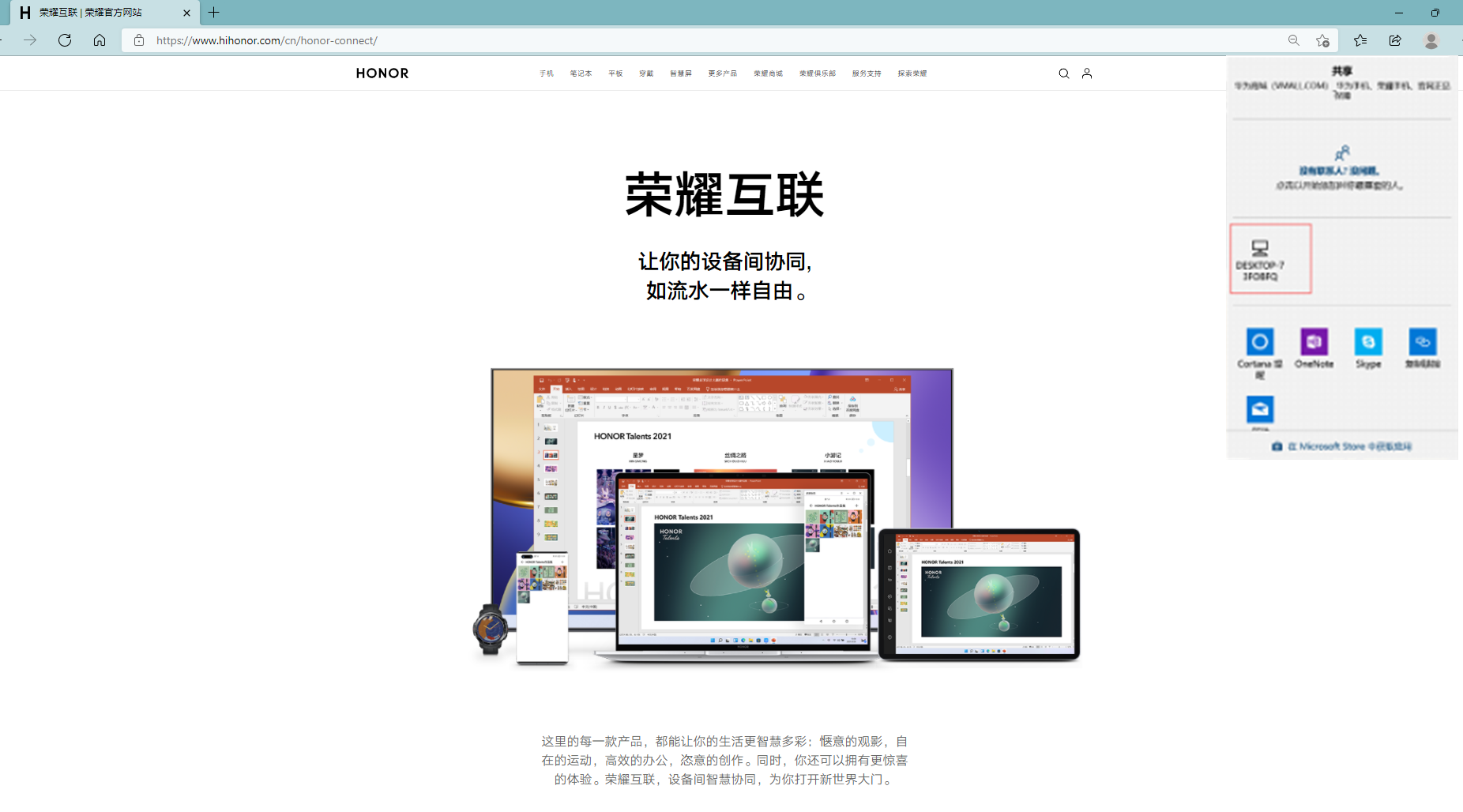 - 如果是要分享网页链接,那么需要使用微软自带的 Microsoft Edge 浏览器。在该浏览器中打开网址之后,点击右上角的共享图标,然后选择分享的计算机。对方的计算机接收到信息后便可以点击打开,接着直接用 Microsoft Edge 浏览器打开分享的网站即可。