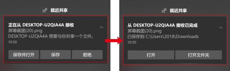 - 接受共享的计算机在通知列表中会出现是否接收的提示,点击保存,即可接收。保存完成后,也会在通知中心出现提示。