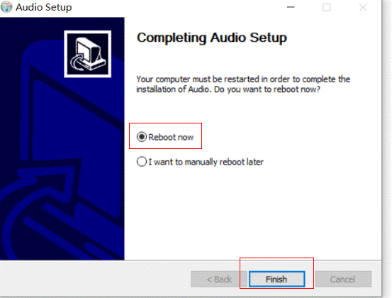 - 音频驱动安装完成后,请重启计算机使之生效。