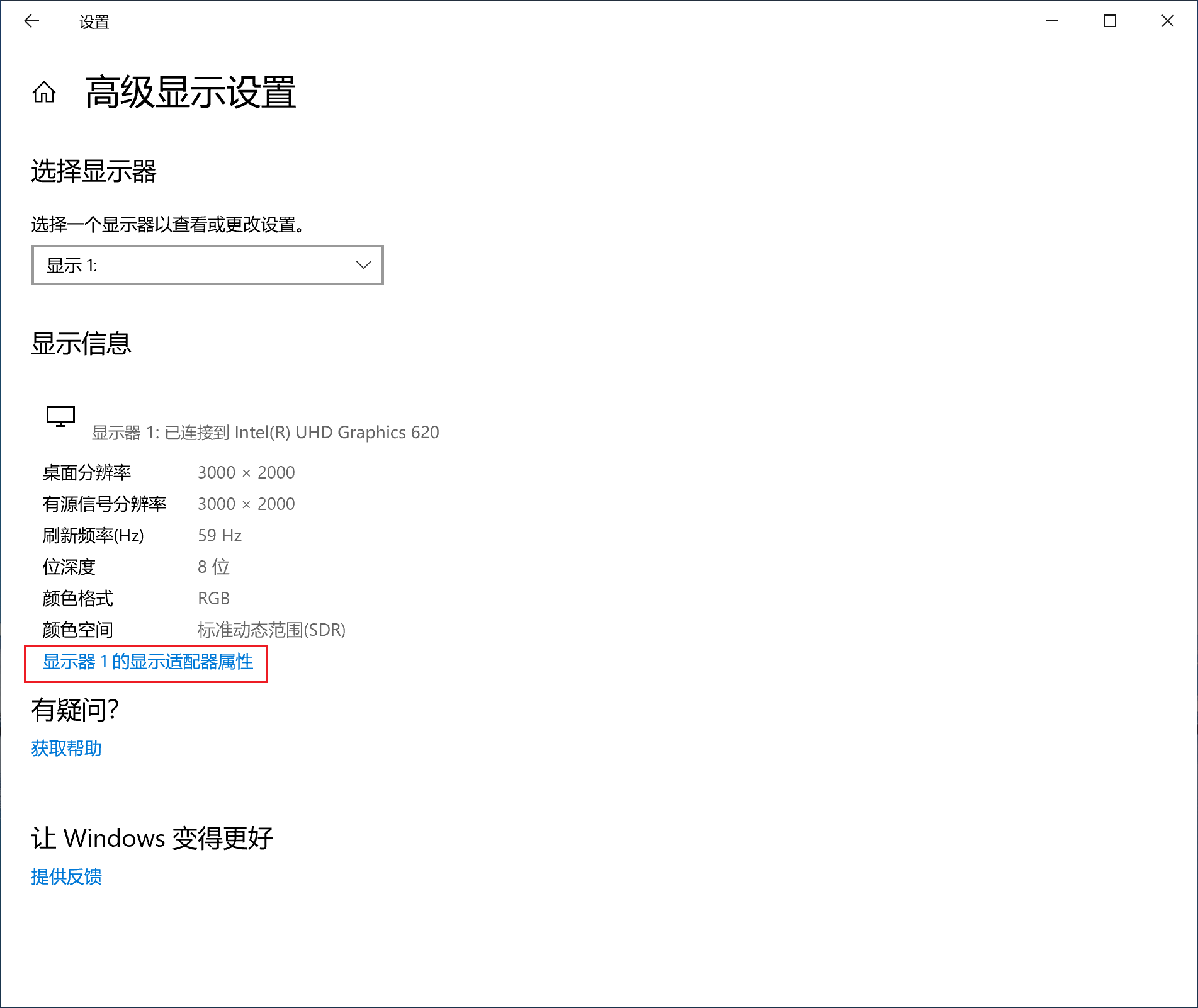 显示器1的显示适配器属性