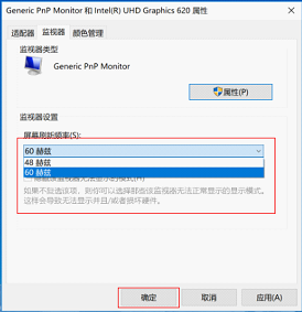 ”下拉框中只有一个刷新率,则表示您的计算机不支持调整屏幕刷新率。