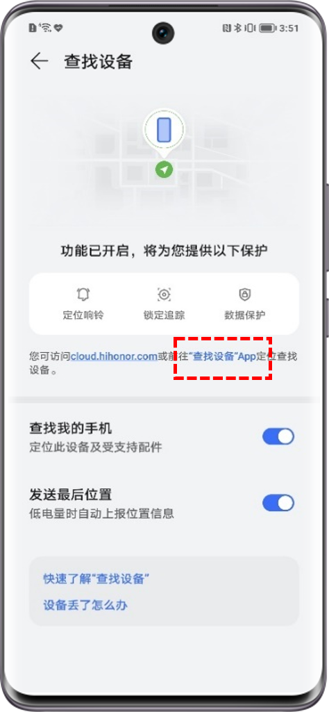您好,请您点击页面中“查找设备”APP蓝色小字即可跳转至荣耀查找设备,使用荣耀查找设备定位本机和其他新荣耀设备。