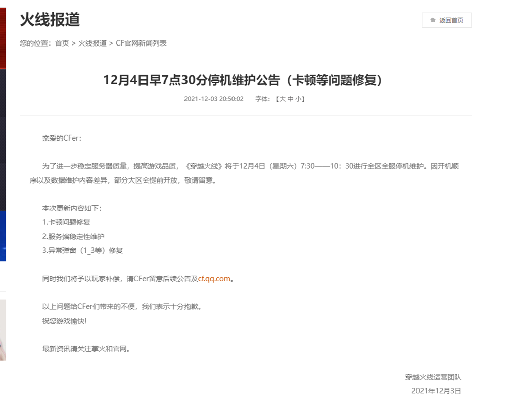您可从穿越火线官网中查阅相关公告内容。