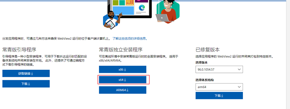 - 使用微软修复工具来解决,点击x64下载,然后进行安装,完后之后请重启电脑。