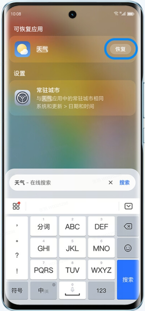 您可尝试在负一屏或桌面搜索框搜索应用名称,然后点击恢复。