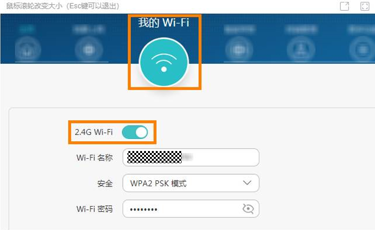登录路由器 Web 配置界面。进入我的 Wi-Fi,确保路由器的 2.4G Wi-Fi 开关或 5G Wi-Fi 开关处于打开状态(此处图片以 2.4G Wi-Fi 为例)。