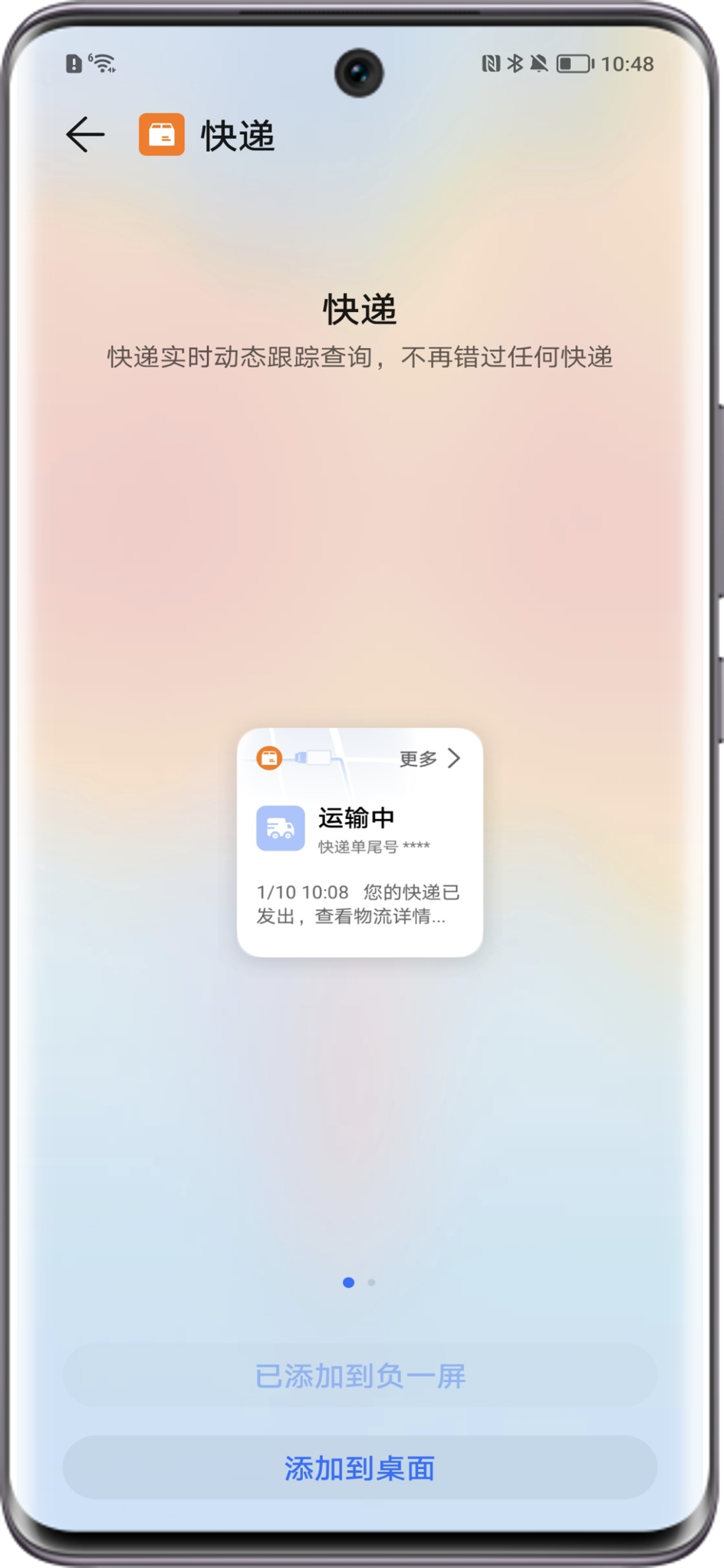 长按卡片 > 更多**卡片 > 左右滑动选择卡片尺寸 > 添加到负一屏或桌面。