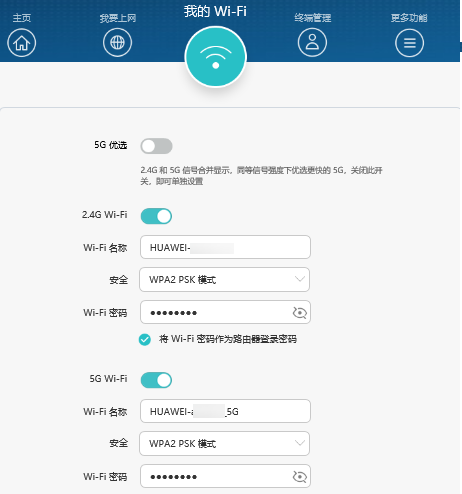 - 选择我的 Wi-Fi。根据 Web 实际界面点击对应的 Wi-Fi 开关进行操作。