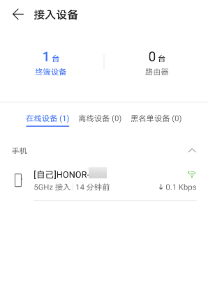 - 点击接入设备,在在线设备列表中查看设备是 2.4GHz 接入还是 5GHz 接入。