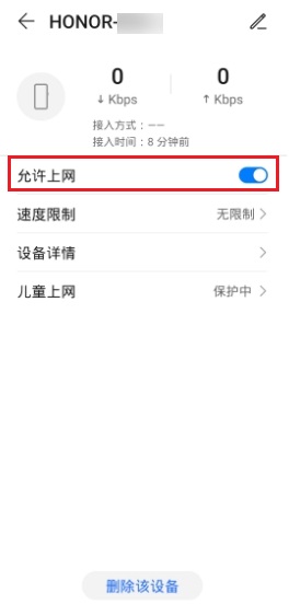 - 通过网线连接的设备没有“允许上网”这个选项,不能对该设备进行拉黑操作