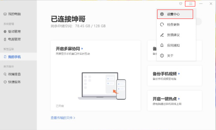 - 打开电脑管家,点击右上角的设置图标。
