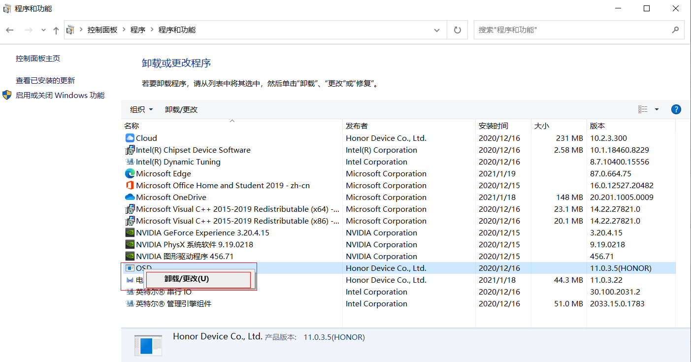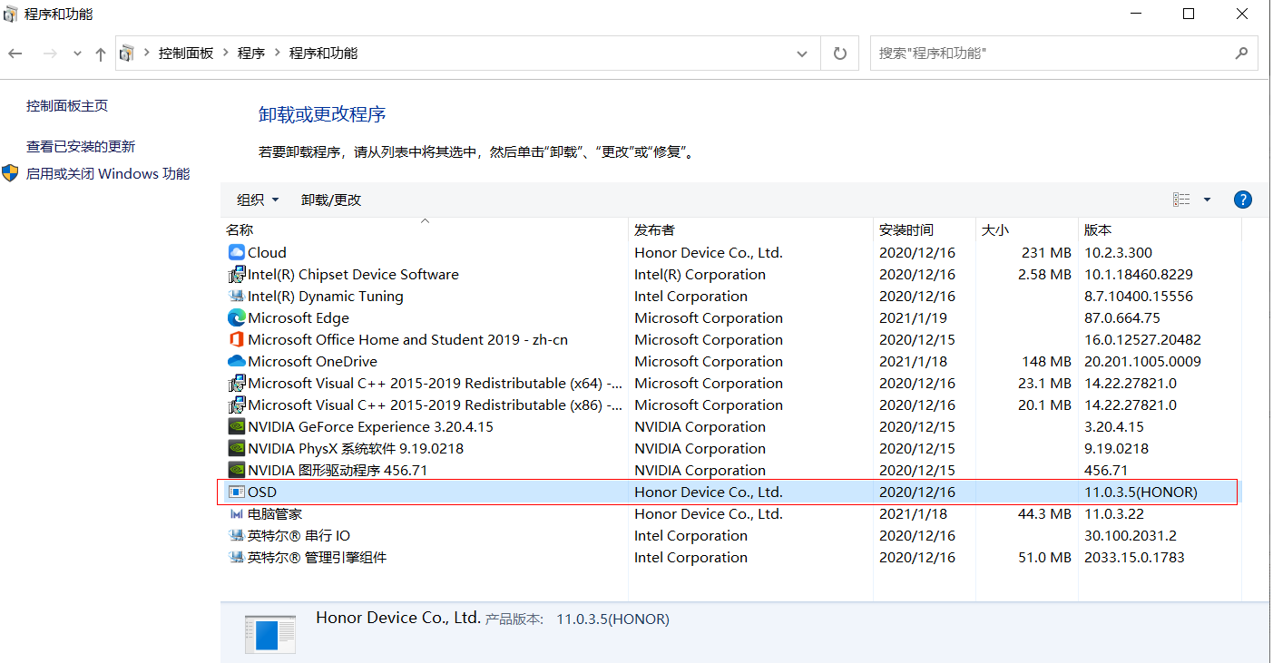 - 卸载热键驱动:请打开,将 OSD 应用程序卸载(如果列表中没有OSD应用程序,请直接b.下载安装热键驱动:);