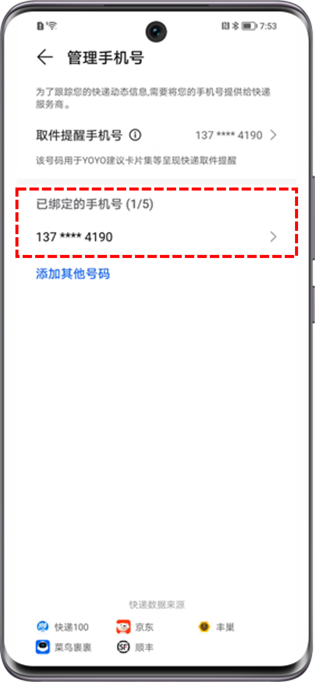 - 首先确认在设置 > 智慧助手 > YOYO建议 > 快递取件提醒中已绑定手机号码。