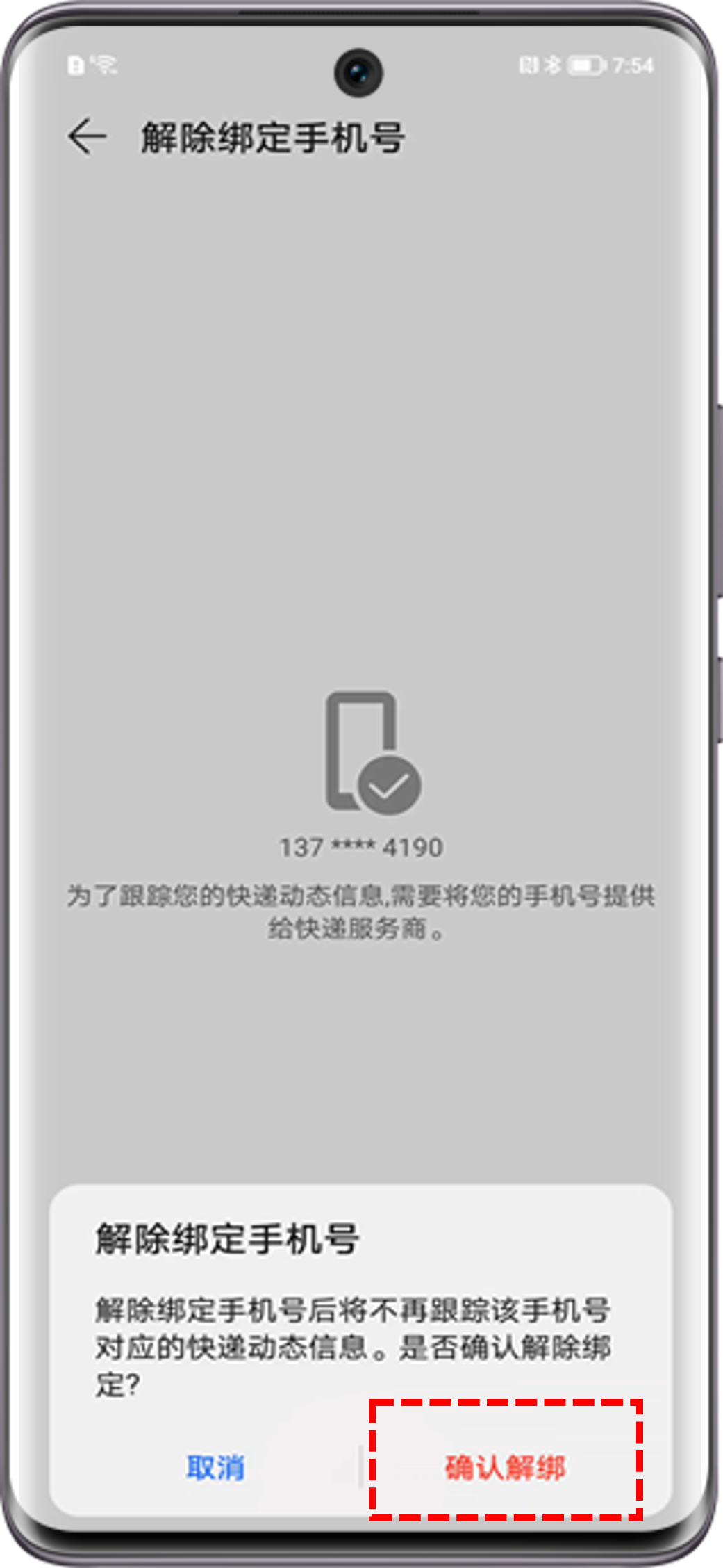 已经在负一屏快递服务中重新绑定手机号,快递信息仍未同步/不显示。