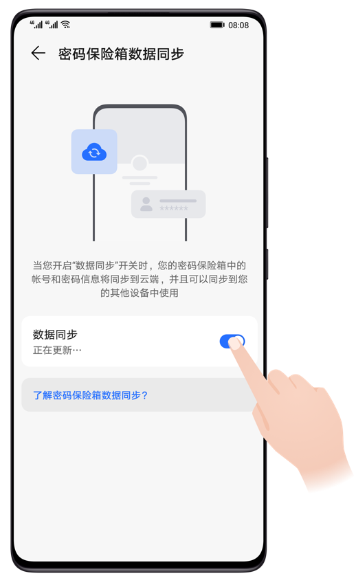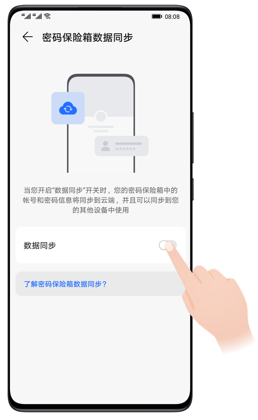 进入设置>安全>密码保险箱>密码保险箱数据同步,滑动以关闭数据同步开关。