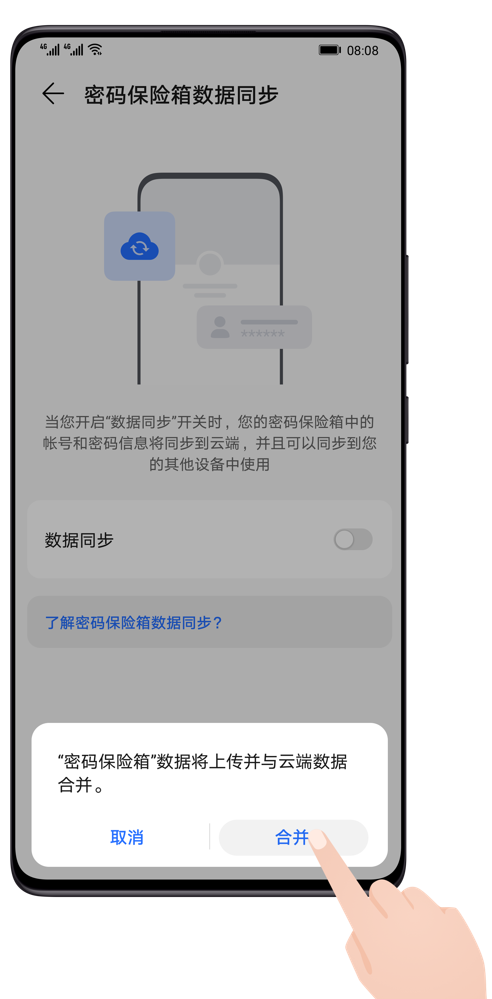 4.确认您的“密码保险箱”数据将上传并与云端数据合并。