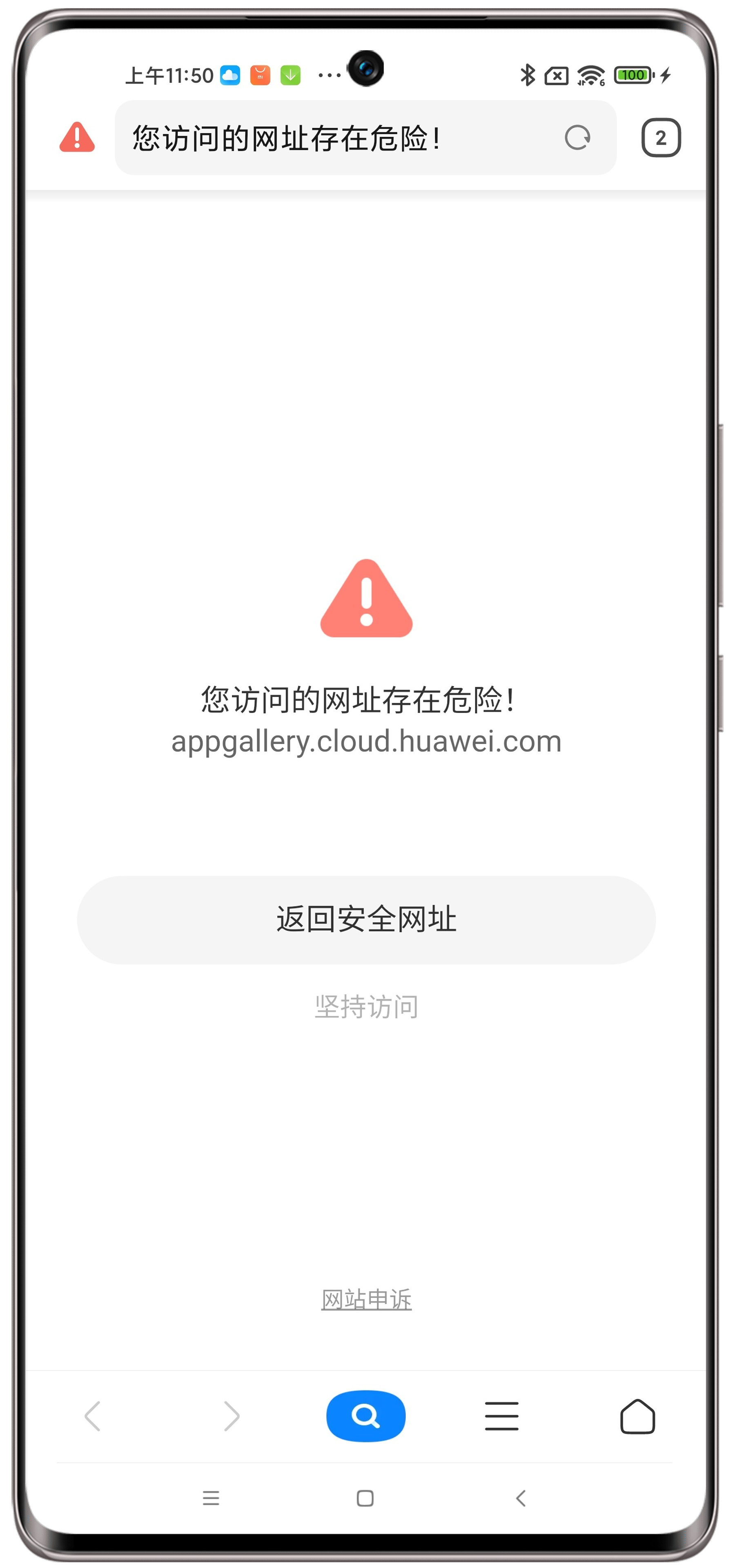小米手机无法通过自带浏览器扫码下载换机克隆,下载行为会被拦截。