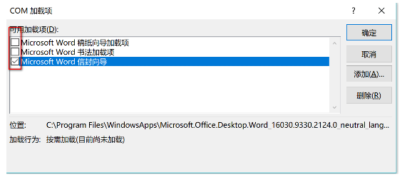 - 在安全模式下打开 Office 应用,并取消 COM 加载项。