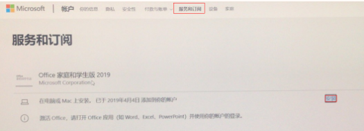 - 在“服务和订阅”界面里,点击Office产品右侧的“安装”,并按提示安装 Office 相应软件。