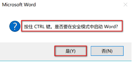 - 按住 Ctrl 键的同时,双击 Office 的任一应用,提示是否要在安全模式下启动,点击“是”。