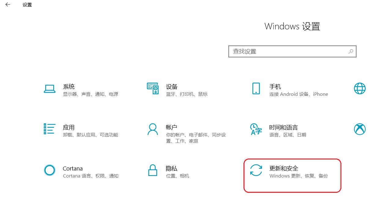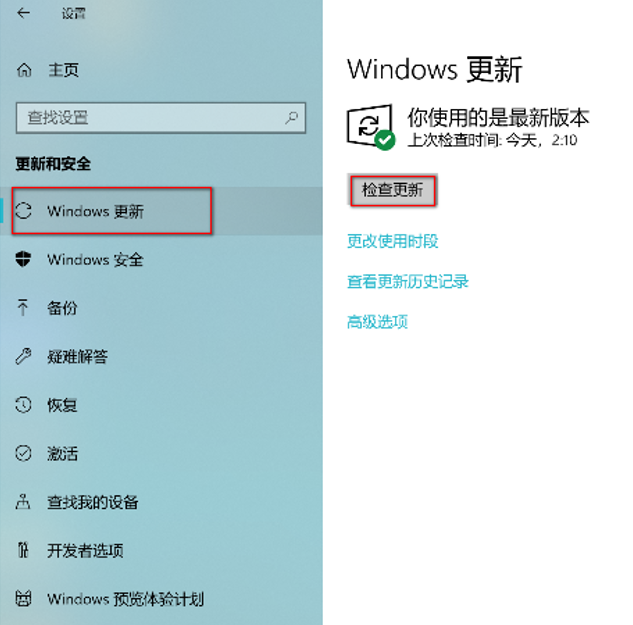 - 点击 Windows 图标 > 设置图标,选择 “更新和安全 > Windows更新”。
