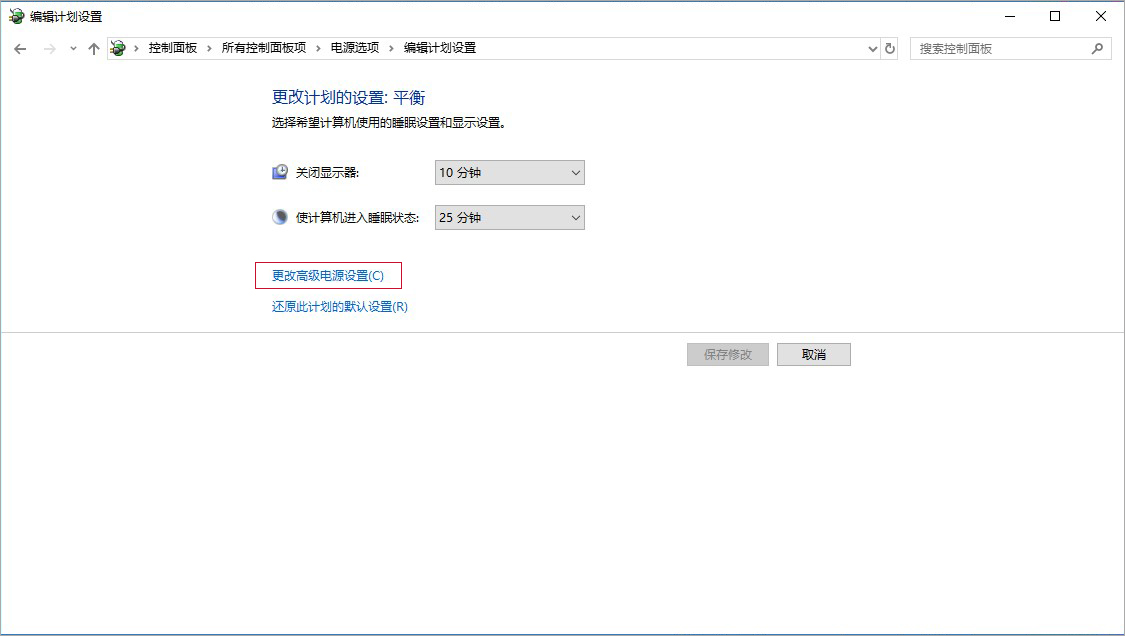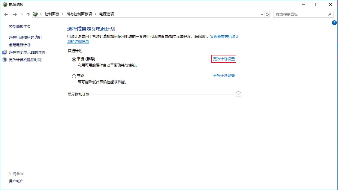 - 点击首选计划中推荐模式平衡后的更改计划设置;
