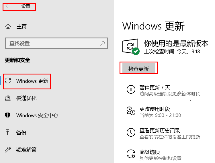 请强制性按电源键10秒后重启计算机,点击Windows图标>设置>更新和安全>检查更新,建议将操作系统更新至20H1(19041.488及以上版本)。