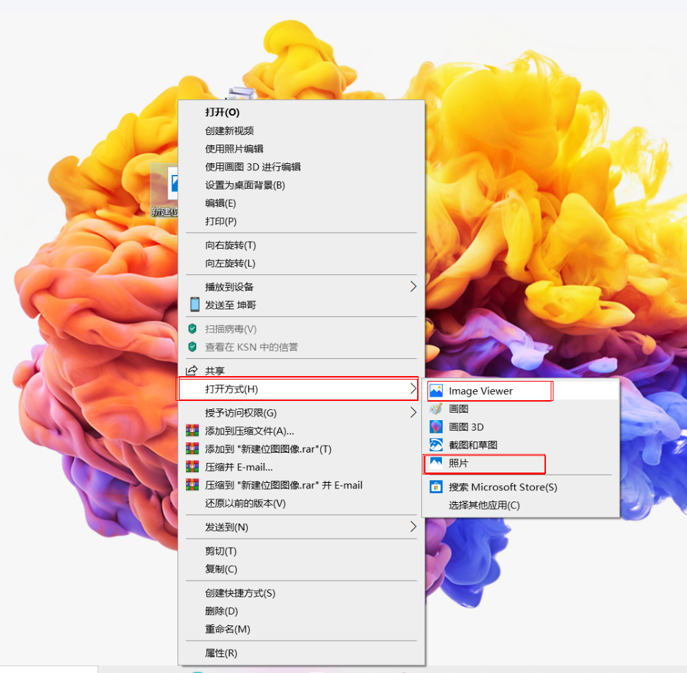 您可以尝试以Image Viewer更换照片应用软件,选中需要打开的图片,点击右键选择打开方式>Image Viewer即可。