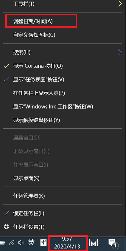 - 在屏幕的右下角,右键点击选择日期和时间。
