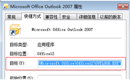 在桌面使用鼠标右键单击 Outlook 图标,点击“属性”,在快捷方式窗口查看应用安装路径。在安装路径下找到 SCANPST.exe。