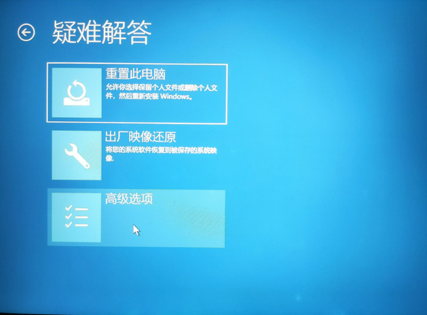 - 在刚开机是长按或点按 F8 键, 选择疑难解答。