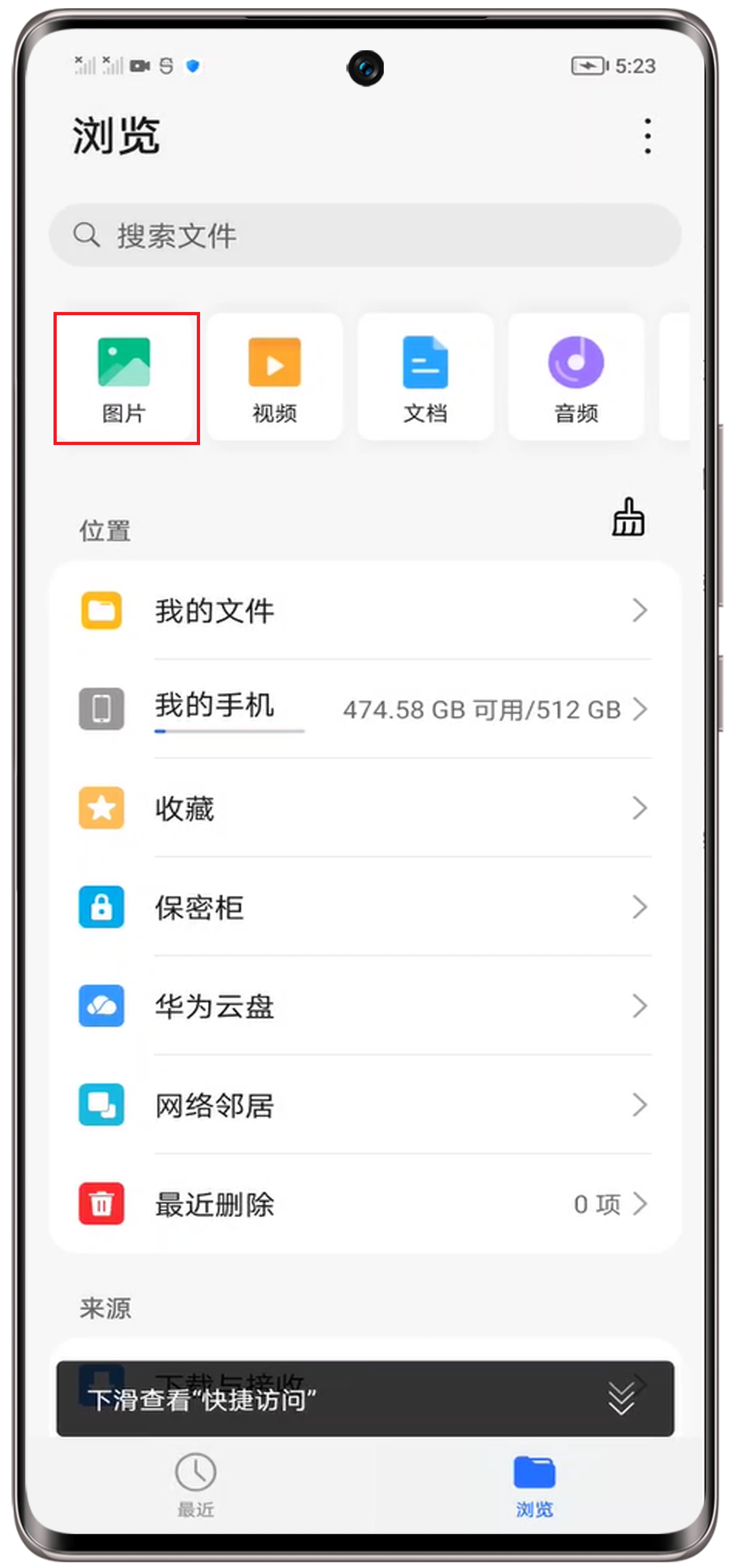 部分应用产生图片/视频保存在隐藏文件夹内,图库无法查看,但是会显示在设置>存储里面。